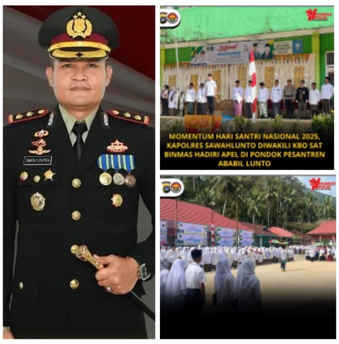 Sawahlunto | Dalam rangka memperingati Hari Santri Nasional Tahun 2025, jajaran Polres Sawahlunto turut ambil bagian dalam kegiatan Apel Santri yang berlangsung khidmat di Pondok Pesantren Ababil Lunto, Desa Lunto Timur, Kecamatan Lembah Segar, Kota Sawahlunto, pada Rabu (22/10/2025) sekira pukul 08.45 WIB.