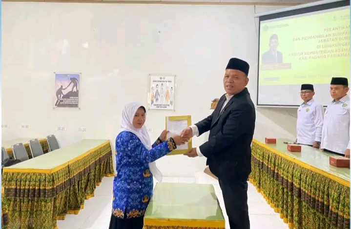Suasana Aula Forum Kerukunan Umat Beragama (FKUB) Kantor Kementerian Agama Kabupaten Padang Pariaman terasa khidmat, Selasa pagi (21/10/2025). Dalam ruangan yang dipenuhi para pejabat struktural, rohaniawan, serta aparatur sipil negara di lingkungan Kemenag setempat, Kepala Kantor Kementerian Agama Kabupaten Padang Pariaman, H. Syafrizal, S.Ag., M.M., secara resmi melantik Riza Novita sebagai Guru Fungsional di MTsN 9 Padang Pariaman.