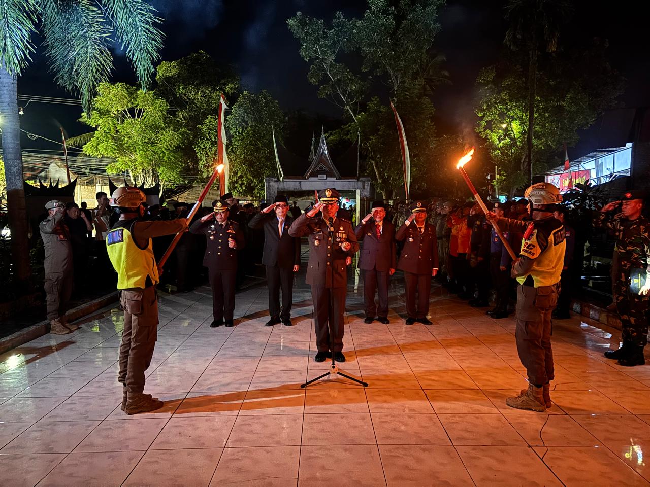 Upacara Renungan Suci tersebut berlangsung khidmat dengan dihadiri oleh unsur Forkopimda, TNI-Polri, organisasi masyarakat, pelajar, serta tamu undangan lainnya. Seluruh peserta upacara membawa obor sebagai simbol penghormatan dan doa bagi arwah para pahlawan yang telah gugur dalam memperjuangkan kemerdekaan bangsa.