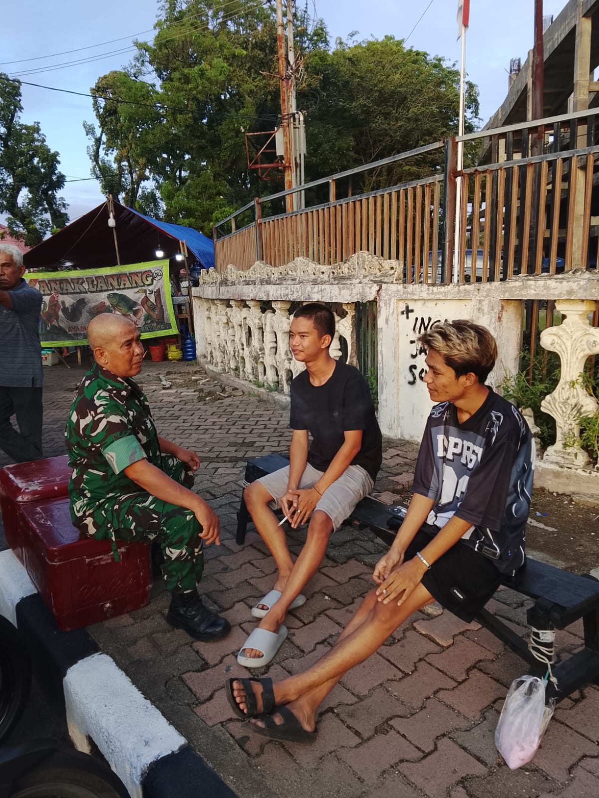 Sertu Bastian terlihat santai namun penuh makna saat berinteraksi dengan para pemuda, menyampaikan pesan-pesan moral dan motivasi agar mereka tidak menghabiskan waktu dengan kegiatan yang tidak bermanfaat.