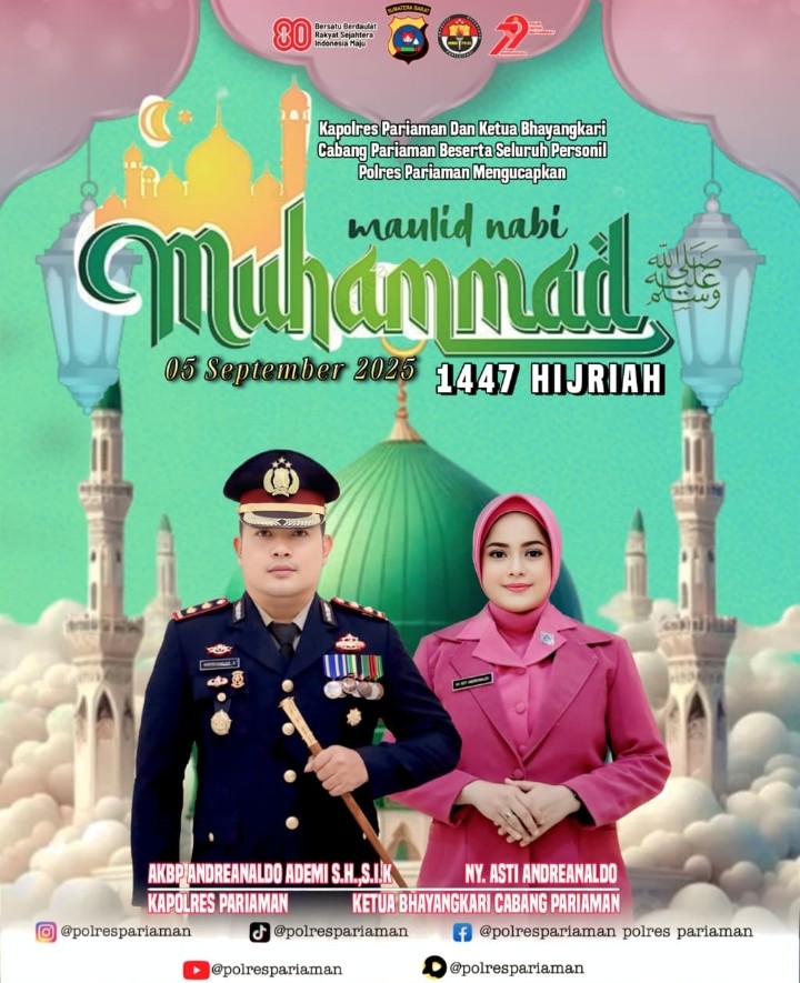 Peringatan Maulid Nabi pada Jumat, 5 September 2025, menjadi momen refleksi yang dimanfaatkan Kapolres beserta Ketua Bhayangkari Cabang Pariaman, Ny. Asti Andreanaldo, untuk menyampaikan pesan penuh makna kepada masyarakat.