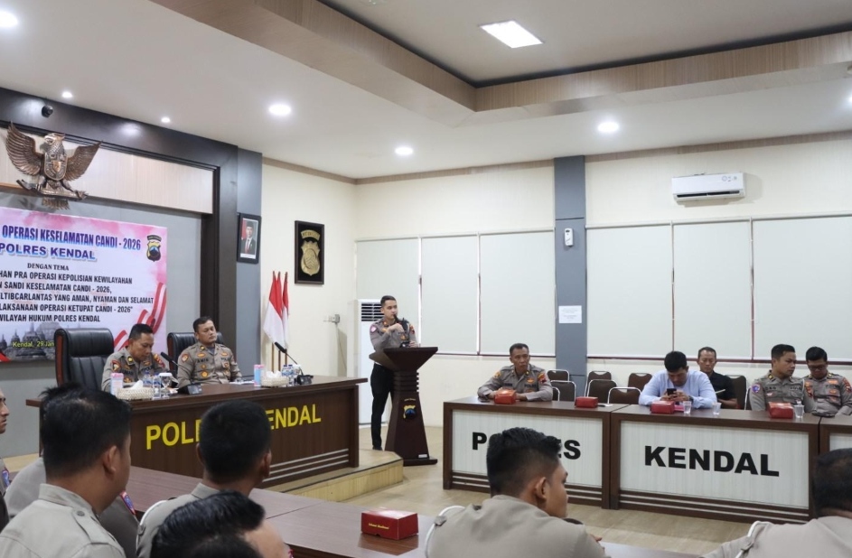 KENDAL – Menjelang pelaksanaan Operasi Ketupat Candi 2026, Polres Kendal menggelar kegiatan Latihan Pra Operasi Keselamatan Candi 2026. Kegiatan ini berlangsung di Aula Tri Brata Polres Kendal pada Kamis (29/01/2026) pagi, dengan mengusung tema “Melalui Latihan Pra Operasi Kepolisian Kewilayahan Dengan Sandi Keselamatan Candi – 2026, Kita Wujudkan Kamseltibcarlantas Yang Aman, Nyaman dan Selamat”.