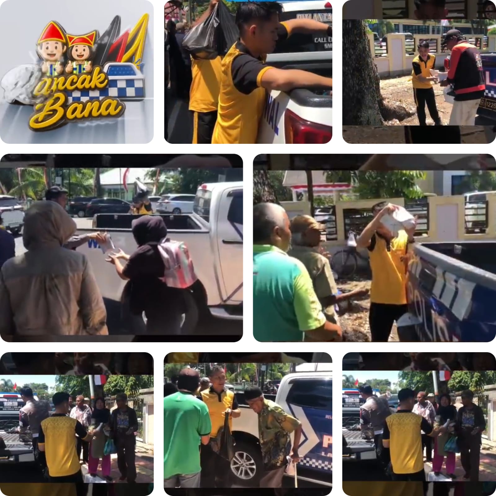 Mengusung program unggulan Rancak Bana, jajaran Ditlantas Polda Sumbar turun ke lapangan menyapa masyarakat dengan penuh keakraban. Mereka membagikan puluhan paket nasi bungkus kepada pengendara kendaraan bermotor, tukang ojek, pedagang kecil, hingga masyarakat sekitar yang sedang melintas di sejumlah titik keramaian Kota Padang. Kendaraan dinas lalu lintas pun difungsikan sebagai sarana operasional pembagian.