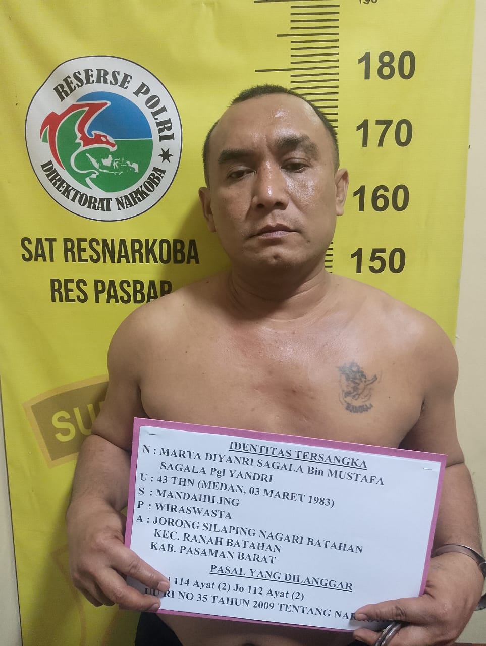 Pelaku yang diduga sebagai pengedar tersebut berhasil ditangkap oleh tim Opsnal Satuan Resnarkoba Polres Pasaman Barat di Jorong Silaping Nagari Batahan, Kecamatan Ranah Batahan, Kamis (13/3/2025) sekitar pukul 00.15 WIB dini hari.
