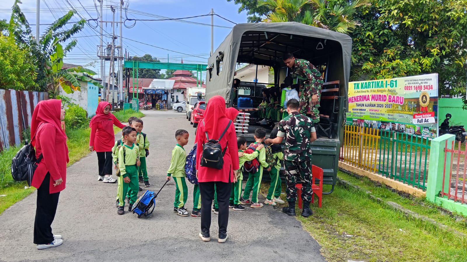 Para guru TK Kartika 1-61 mengapresiasi kehadiran Babinsa yang dinilai sangat membantu dalam menjaga ketertiban serta memberikan rasa aman selama kegiatan berlangsung.