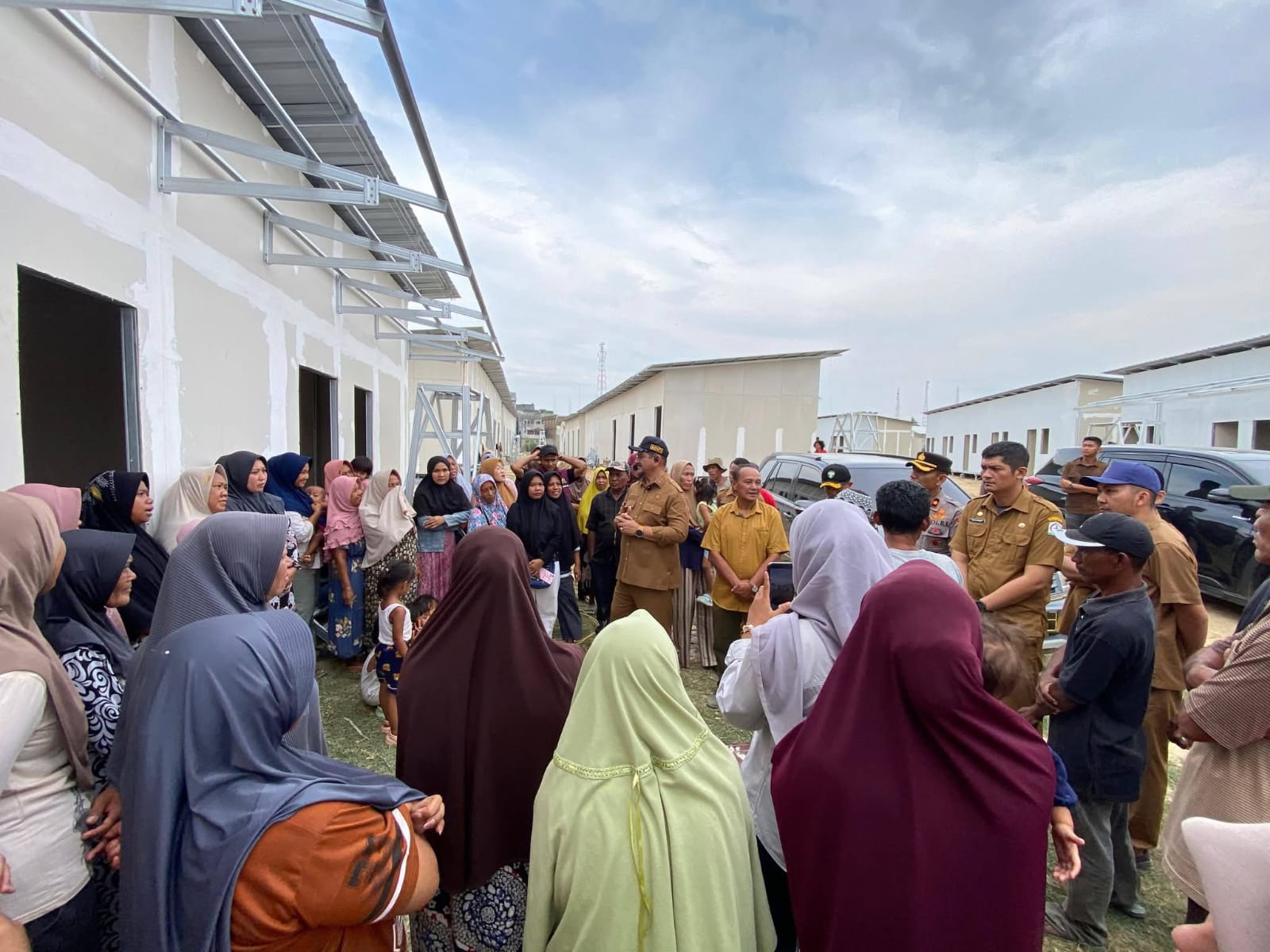 “Kami akan mengupayakan solusi terbaik bagi masyarakat di kedua lokasi. Di Kampung Suka Jadi telah dibangun 45 unit huntara yang diperuntukkan bagi warga yang sebelumnya menyewa rumah, menumpang dengan keluarga, maupun yang tinggal di lahan HGU. Dalam waktu beberapa hari kedepan, pembangunan diharapkan selesai dan dapat segera ditempati,” ujar Bupati.